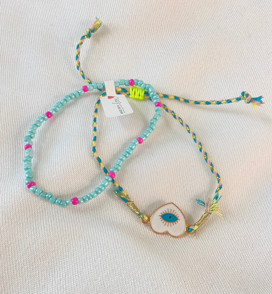Threaded Blue evil eye bracelet with beaded separate bracelet (pack of 2)