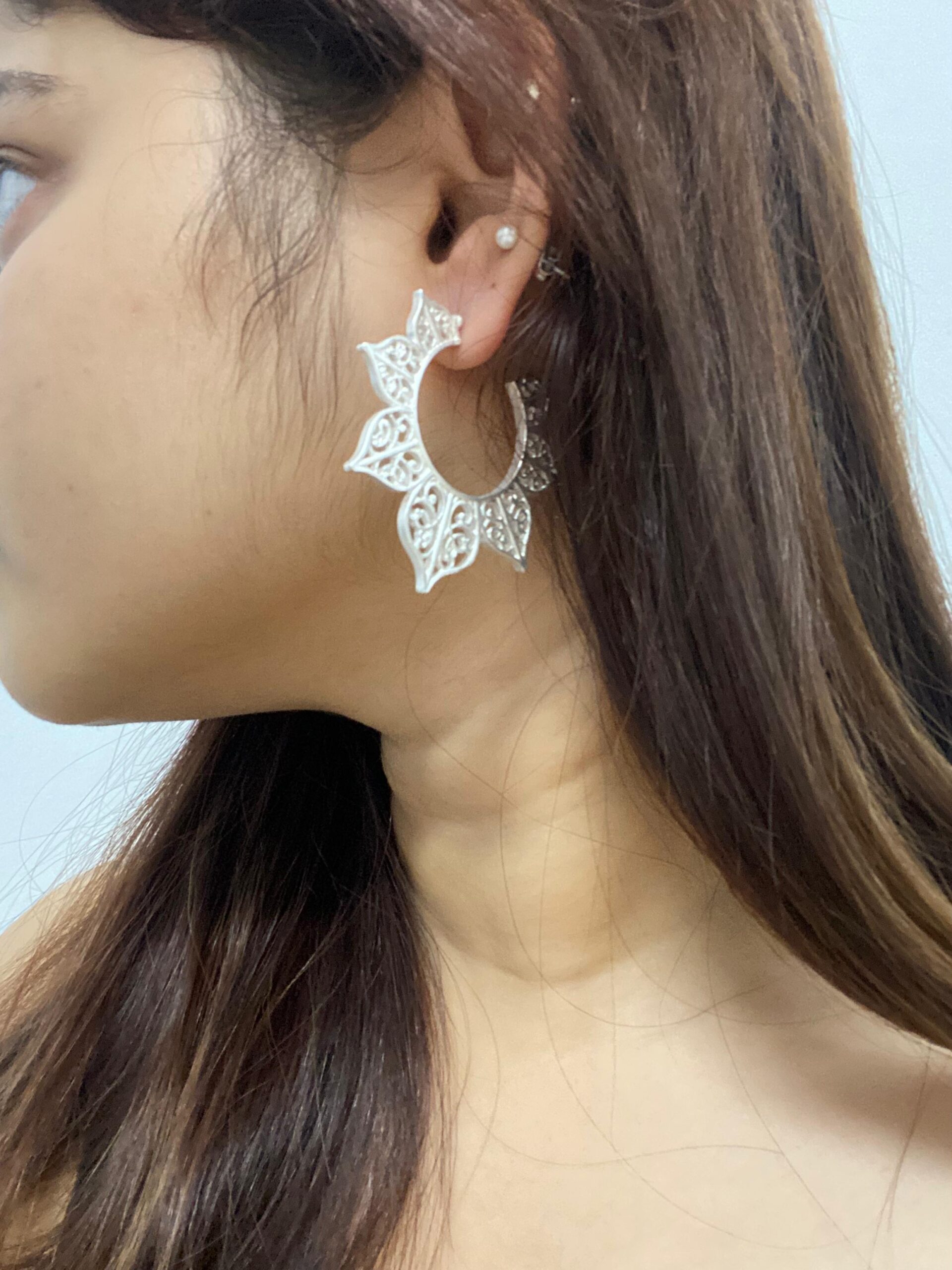 Hollow out flower shaped hoops (silver matte)