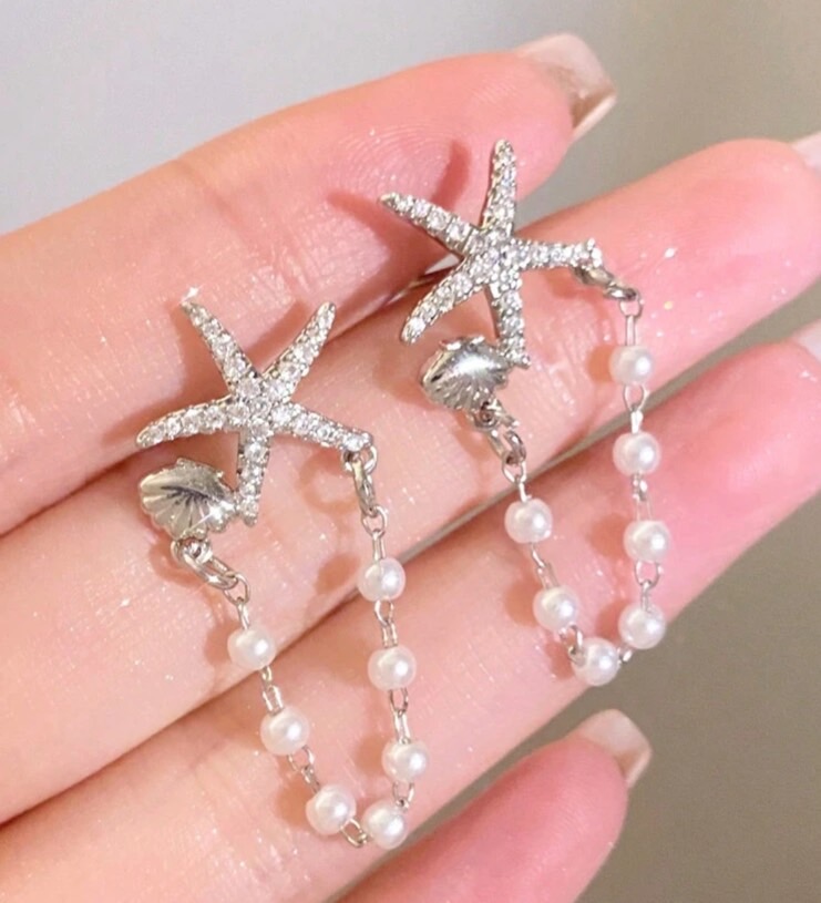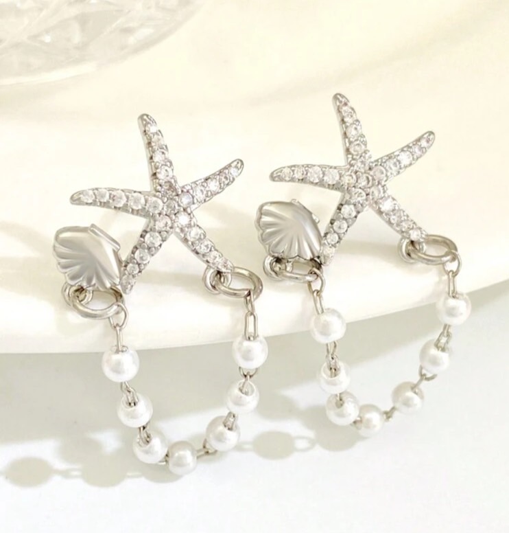 Starfish shell & pearl earrings