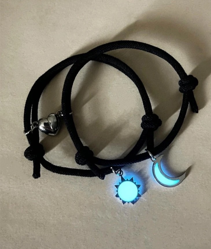 Sun and Moon magnetic glow in the dark couple bracelet