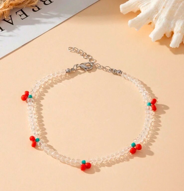 Transparent crystal beaded cherry anklet